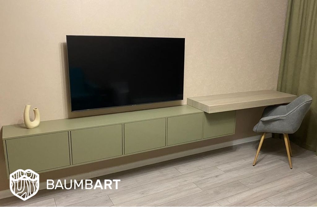 Размер изделия на фото – 240 х 33 х 35 см. (консоль); 145 х 45 х 8 см. (столешница);